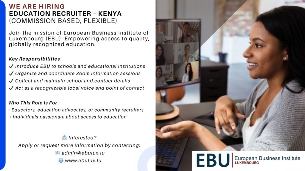 As recruiters working with EBU and EUNI, your role is to clearly communicate the value, affordability, accreditation, and career relevance of EUNI Training Institute programmes to prospective learners across Kenya and the wider diaspora. READ MORE HERE.